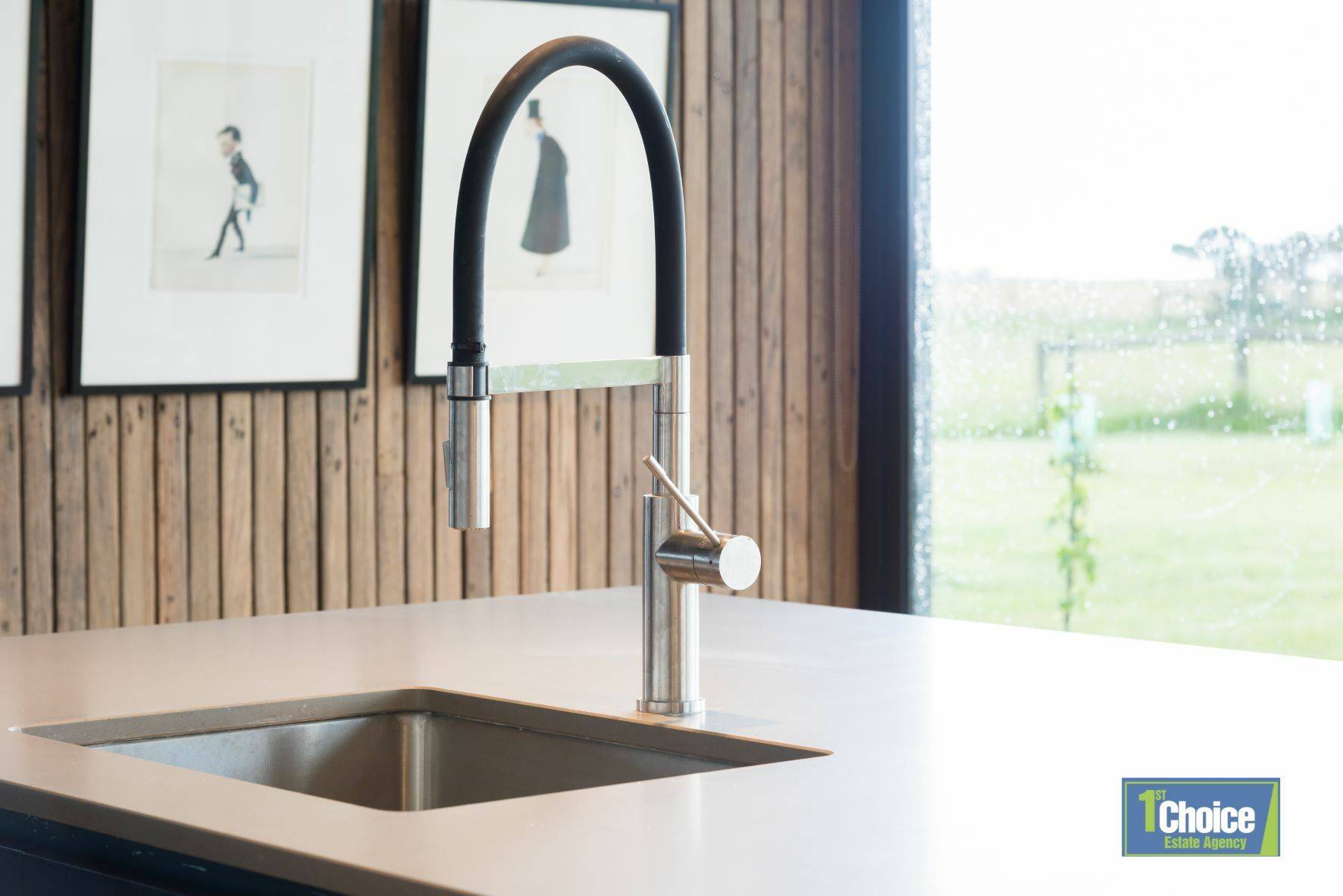 The designer kitchen has AEG appliances, including a convection oven, steam oven, and induction cooktop. Add the butler's pantry, and you have the perfect environment for creating gourmet masterpieces. The cantilever Caesar Stone island bench is ideal for sitting over dinner and watching the magnificent sunsets over San Remo and Churchill Island.