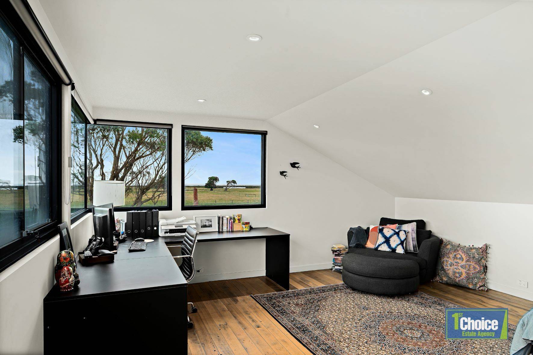 The versatile upstairs loft could be a home office or additional bedroom/living area with spectacular 180-degree views to such landmarks as San Remo Bridge, Churchill Island and Rhyll.