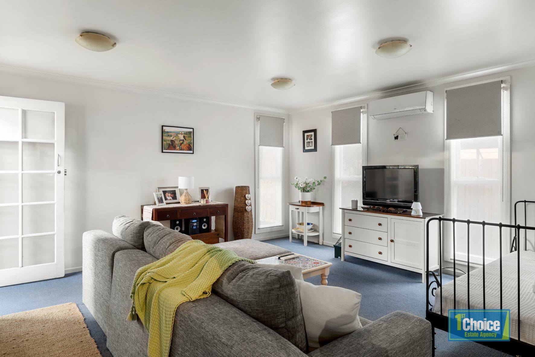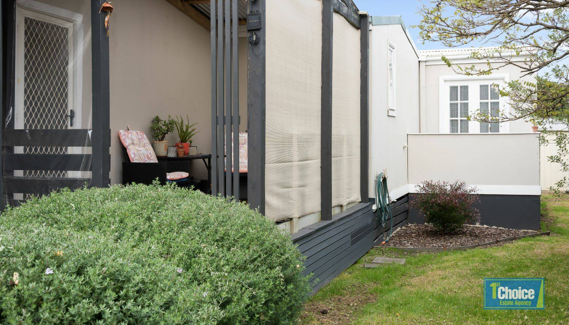 Sitting behind a high picket fence this charming 1 bedroom cottage is full of surprises.  Featuring a separate spacious living area with split-system air conditioning, good size kitchen with timber bench tops, pantry and  electric cooking, meals area a door taking you to an extra space which can be used for an office or utilize for a separate laundry.  The bedroom has a walk-in-robe, bathroom and french doors to a private balcony overlooking fruit trees.  With natural light and neutral throughout only adds to the appeal and character.  Other attributes –