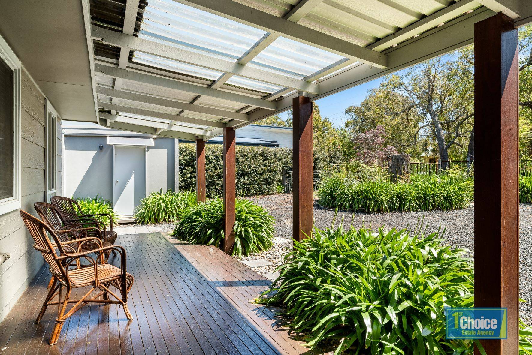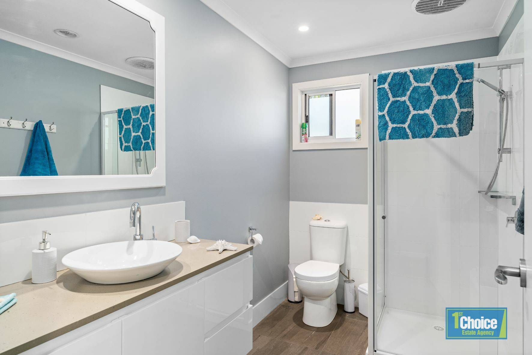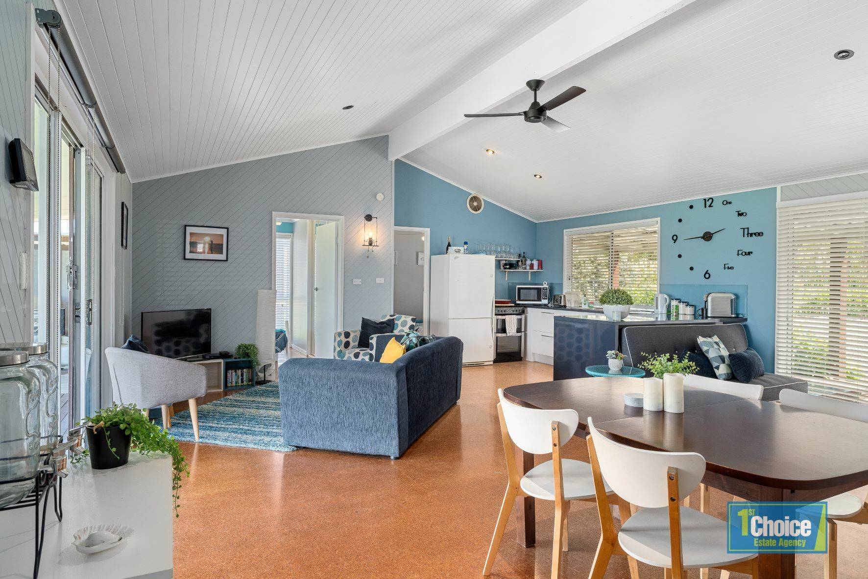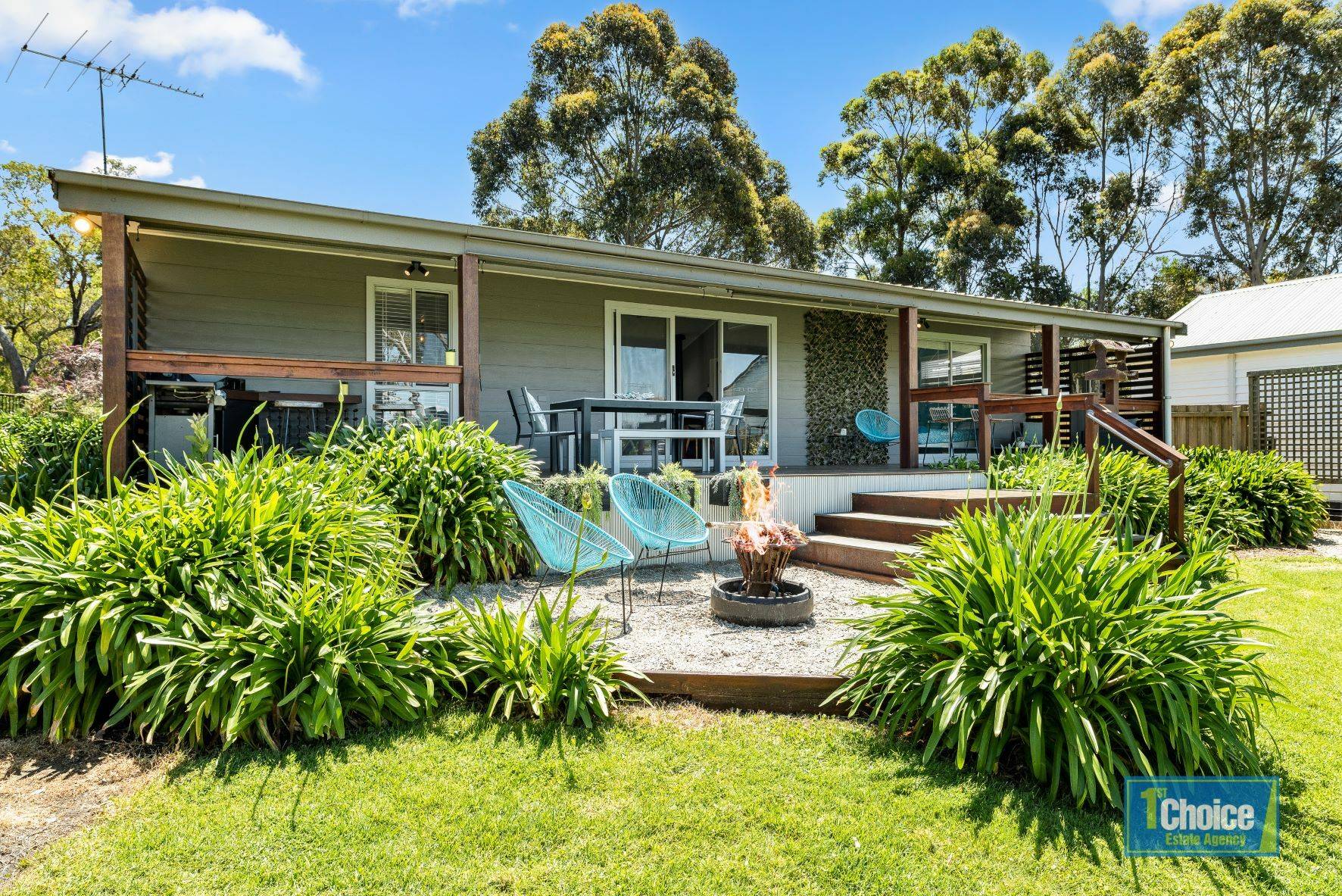 Privately situated on a generous sized, fully fenced block of approx. 1,700 sq.m. and surrounded by the perfect mix of cottage gardens and established native trees,  this quaint 3 bedroom gem offers plenty of charm and character.  Upon entering the home you are welcomed by an open plan living, kitchen and meals area. The cottage kitchen has a gas stove, rangehood, large soft closing drawers with workable bench space.  The heart of the home is complemented by cathedral ceilings, painted timber feature walls, wood fire, ceiling fan and split-system air conditioning. The floor plan has 2 of the 3 bedrooms on one side of the home both having built-in-robes and ceiling fans, the master being off the living zone with built-in-robes, powder room and sliding door to back deck giving parents their privacy.  Bring the outside in with the sliding glass door from the living area which opens onto a wide rear deck perfect for alfresco dining, summer barbeques, or entertaining family and friends which overlooks a vast lawn area with room for kids to play which has a skateboard ramp and basketball area, giving the perfect ambience of coastal/rural retreat.  BONUS –Guest quarters consisting of large open space to accommodate sleeping  and sitting area, kitchenette, separate toilet and an outdoor shower.   PLUS it has its own private deck offering magic water and hill views . Enjoy a glass of wine taking in the enticing water and hill views and all the peaceful serenity from both house and bungalow private decks.   Take a short stroll on the boardwalk through the canna lilies . Guests can arrive without having to go to the main house as there is a separate gate entrance for parking.  The property has plenty of outside storage, garden shed and double carport.    Tenby Point is ideal for anyone wanting a relaxed lifestyle in one of Bass Coasts best locations that offers natural settings on large parcels of land with rural surrounds.  Only minutes to the popular fishing village of Corinella which has two boat ramps, one being a floating pontoon with 24 hour access for the keen fishermen, a foreshore café, general store, community centre, tennis courts, lawn bowls and hall.  A local primary school, kindergarten/day care centre, school bus stop, local shops including permanent doctor, chemist, bank, newsagency, hairdresser, restaurants, ambulance depot and wineries are all within 7 minutes.  Major shopping centres and Phillip Island approx. minutes.  Easy commute to CBD and South Eastern suburbs with dual lane highway.