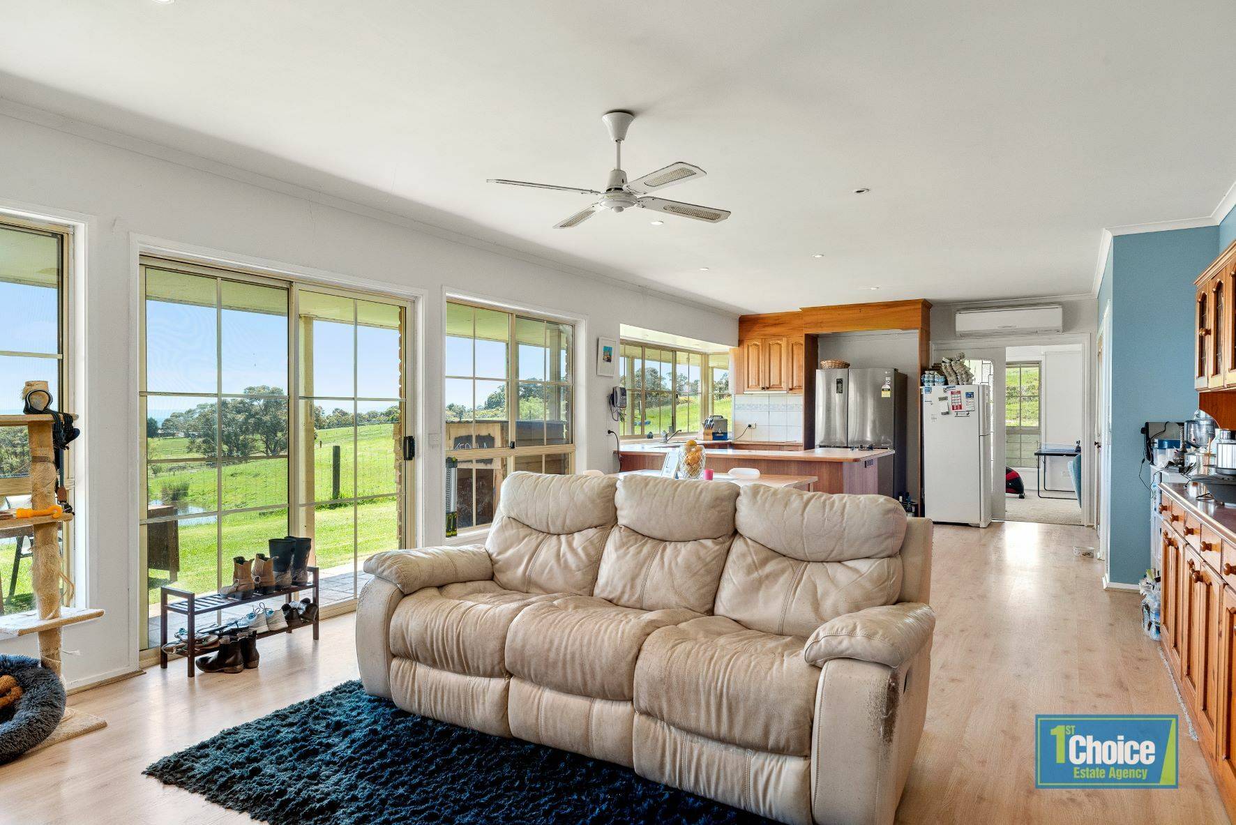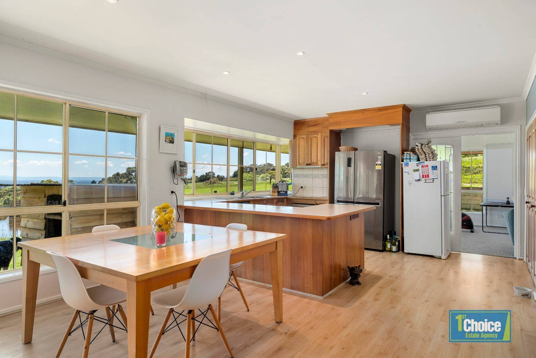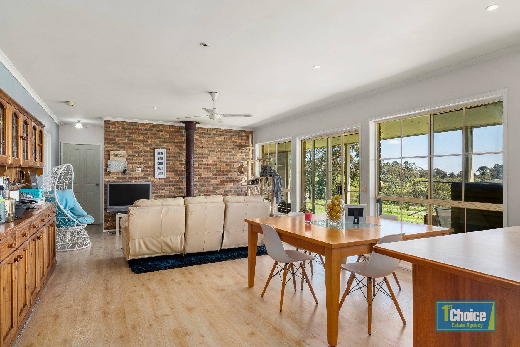 Within 2 kms to the Nyora township and only 11 kms to Lang Lang, this well positioned 3 bedroom brick homestead with colonial windows and verandas all round is situated on an exclusive 3.79 hectares of undulating land and will provide the rural lifestyle for all to enjoy.  Entering through the sliding door to the open plan kitchen, dining and living area which overlooks the picturesque layout of the land with dam and stunning views, gives the ambience of tranquility and peace.  The sunsets and lights in the distance are breathtaking and would be the best elixir for unwinding from a hard day at work.  The open plan concept is complemented by floating floor, wood fire, ceiling fan and split-system air conditioning.  The timber country kitchen is well appointed with induction cooktop, dishwasher, electric oven, rangehood and double size pantry.  The view from the window makes cooking all the more enjoyable.