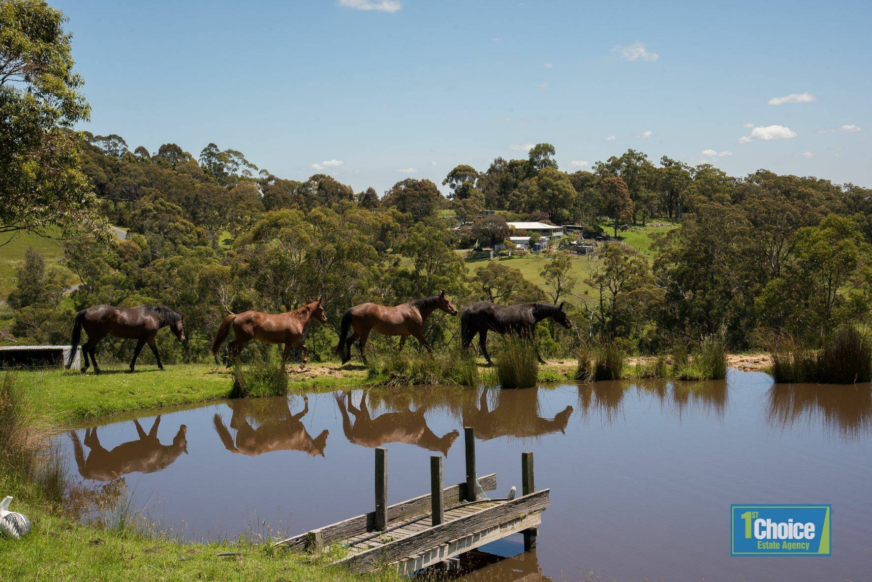 5 paddocks of which three has double boxes and the other 2 smaller paddocks have open boxes.  All paddocks are fed by pumps to horse troughs.   A made laneway gives easy access for horses being transferred from one paddock to another with three wire electric fencing.