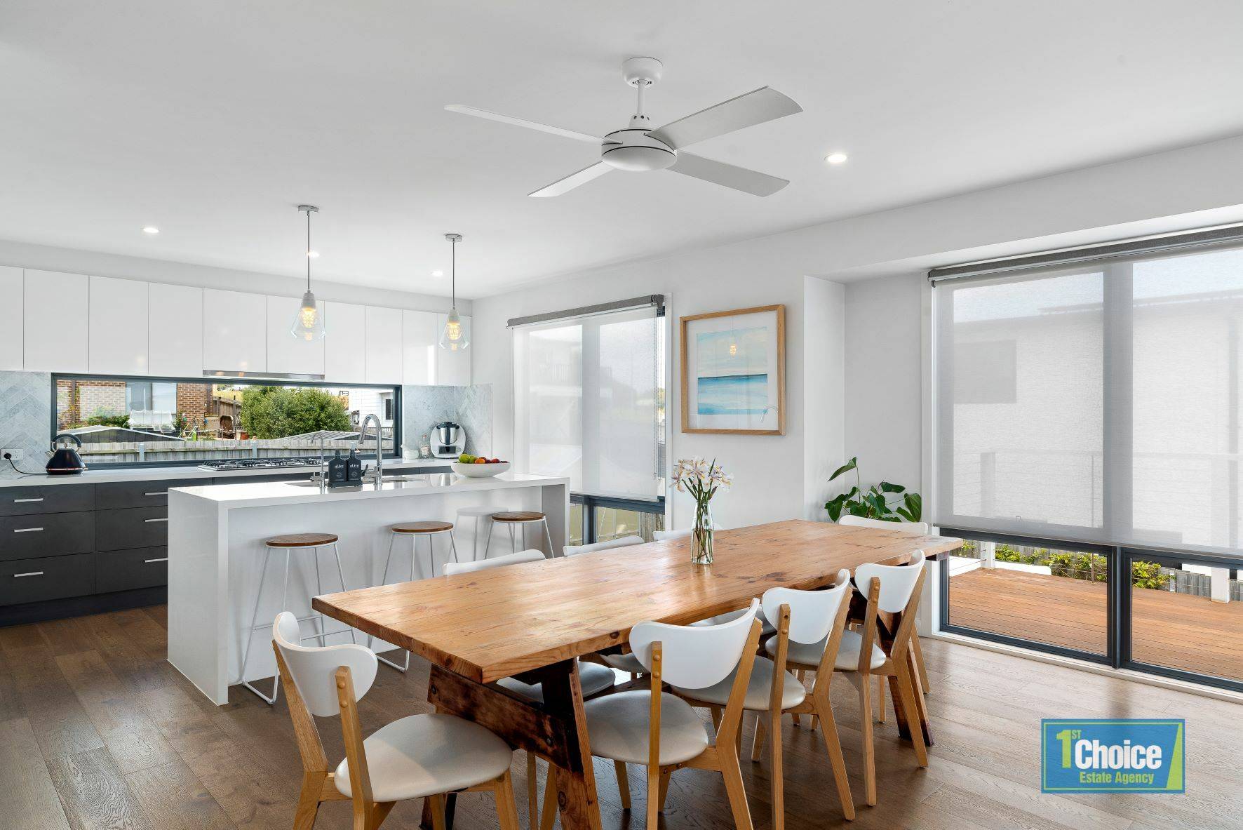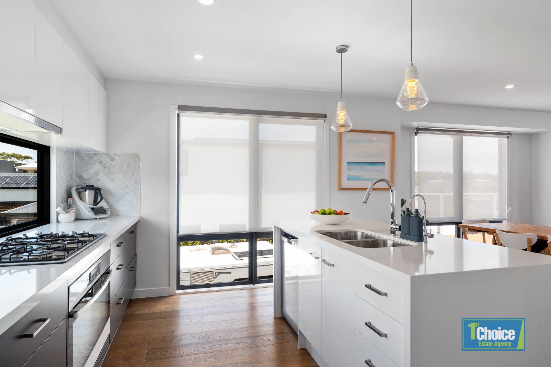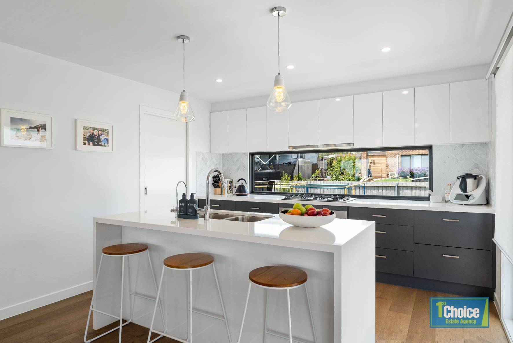 Upstairs this well considered residence features open concept living and dining, study nook, powder room, a generous size kitchen with dishwasher and walk in pantry, ample overhead cupboards and full length viewing window abutting the sink and bench to keep an eye over the rear garden.  A light and bright master bedroom with views of Newhaven Yacht squadron, ensuite and walk in robe.