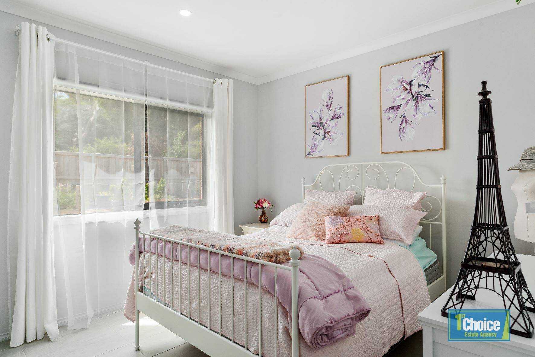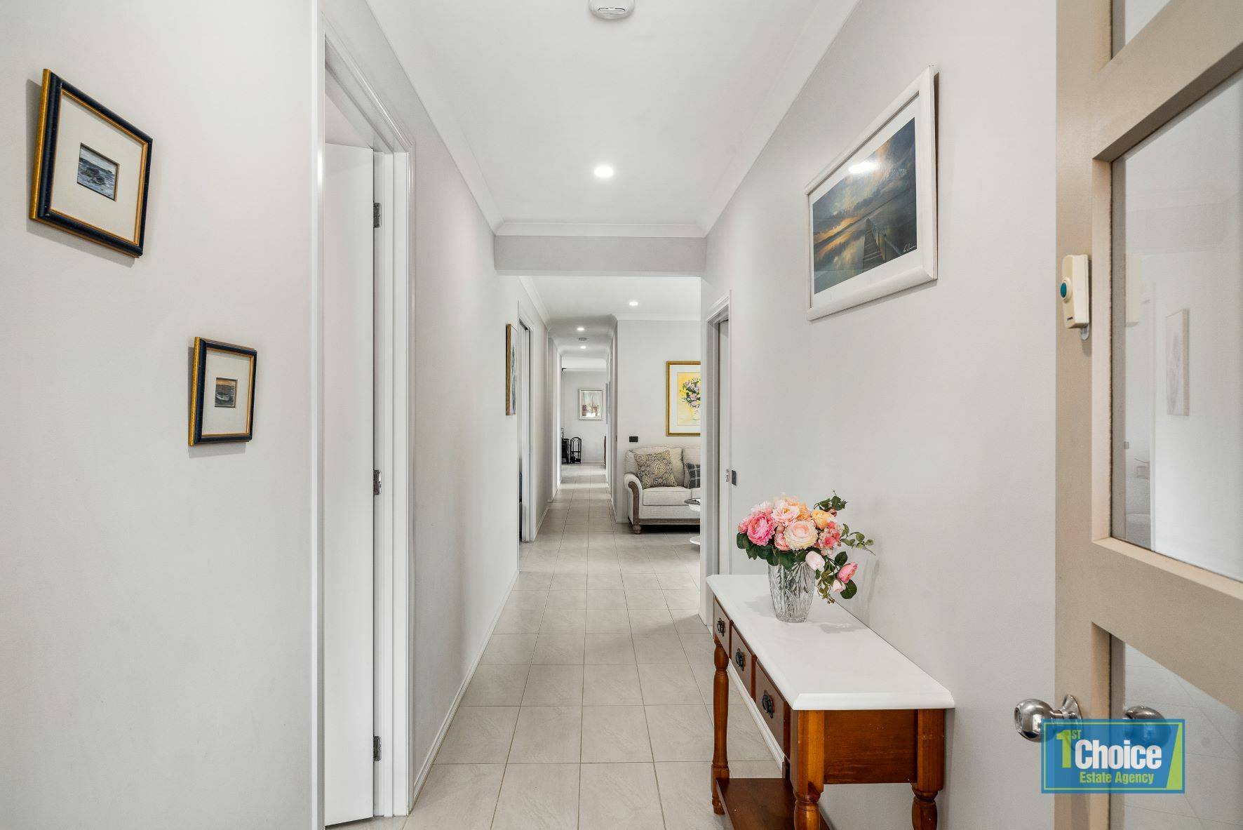 At the front of the home you have the spacious master bedroom with a reverse cycle air conditioning, walk-in-robe and ensuite with his and her vanities.  The formal living zone is well positioned for the adults to have their own private time.  The other 3 bedrooms , two of which have walk-in-robes and the 3rd having double sliding entry doors and b/i/robes are all serviced by the family bathroom.  The laundry is well appointed with bench space, overhead cupboards and full broom and utensil cupboard with access to outside.    The large open plan concept of living, dining and kitchen is the heart of the home having a wood fire, reverse cycle air conditioning and sliding doors from both living and meals zones. The kitchen boasts a wide stone island bench, plenty of soft closing drawers and overhead cupboards, stainless steel appliances , induction cooktop, electric oven, rangehood and dishwasher.  Be spoilt by the large butlers pantry, great for entertaining family and friends.