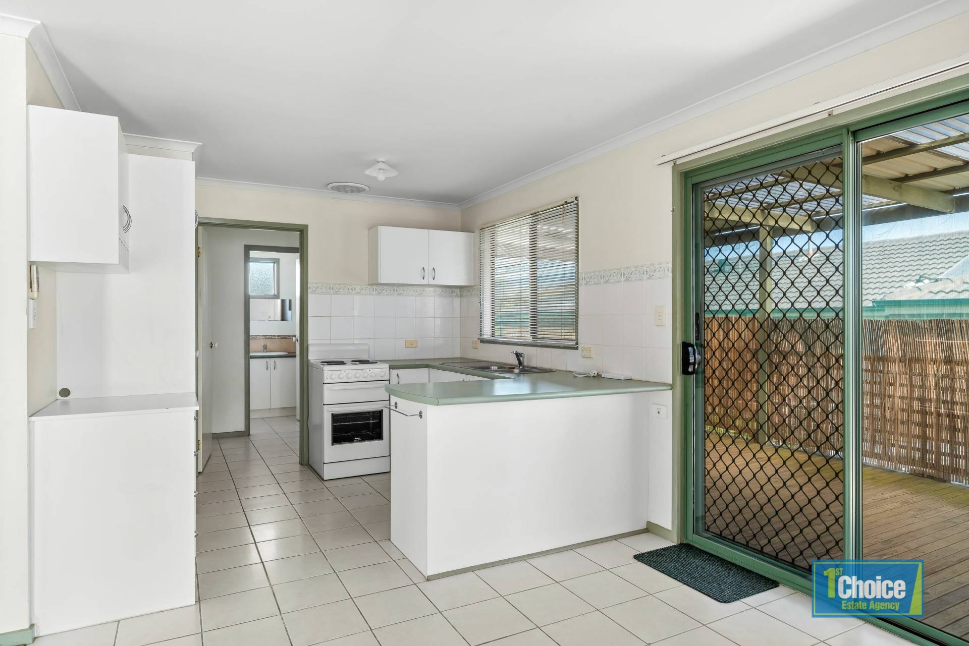 The kitchen offers electric cooking, overhead cupboards, pantry and tiled floor.  The large undercover entertainment deck is great for entertaining all year round and with sliding door access from meals area the kids can also play safely as the deck is gated for security.