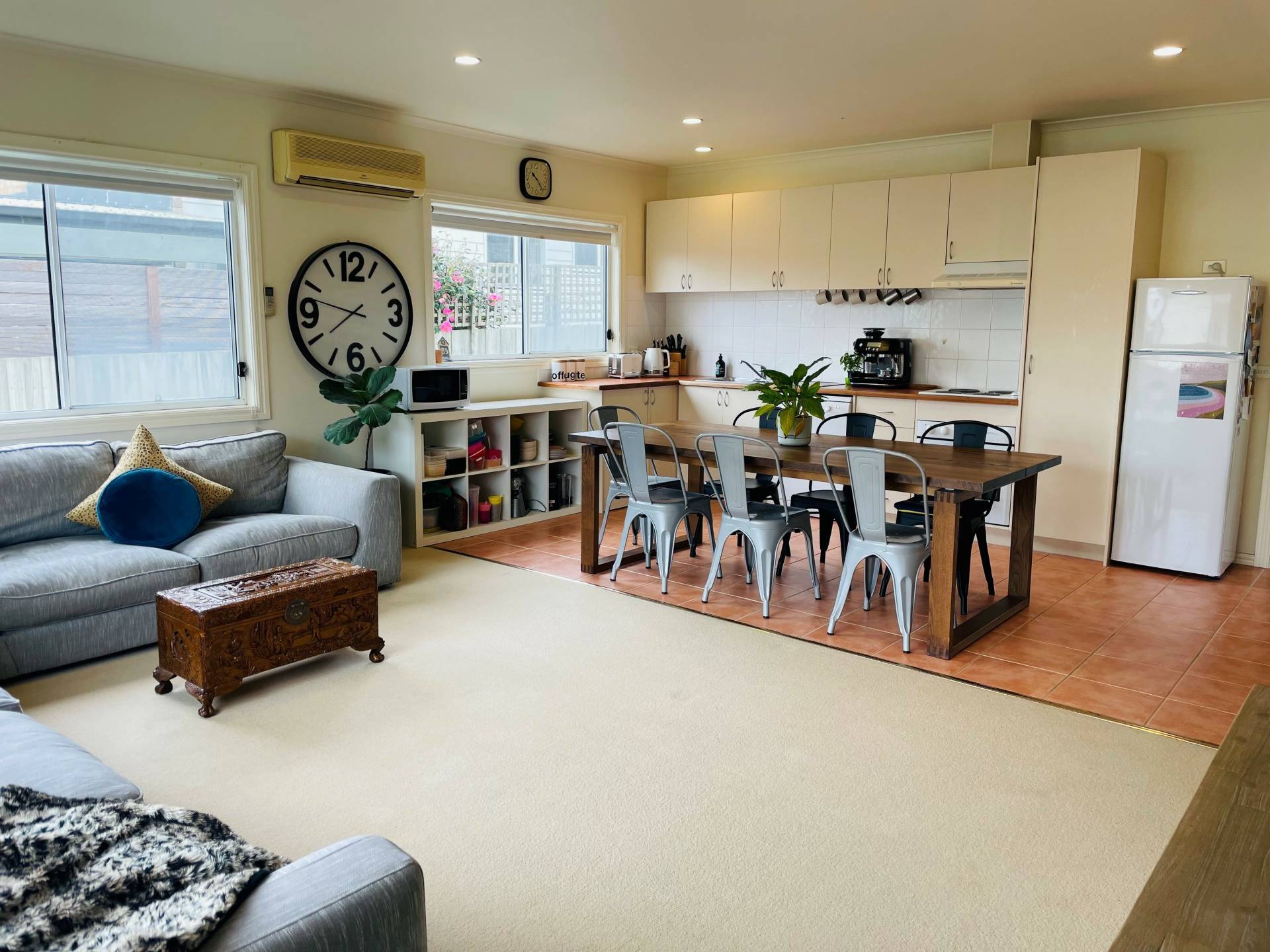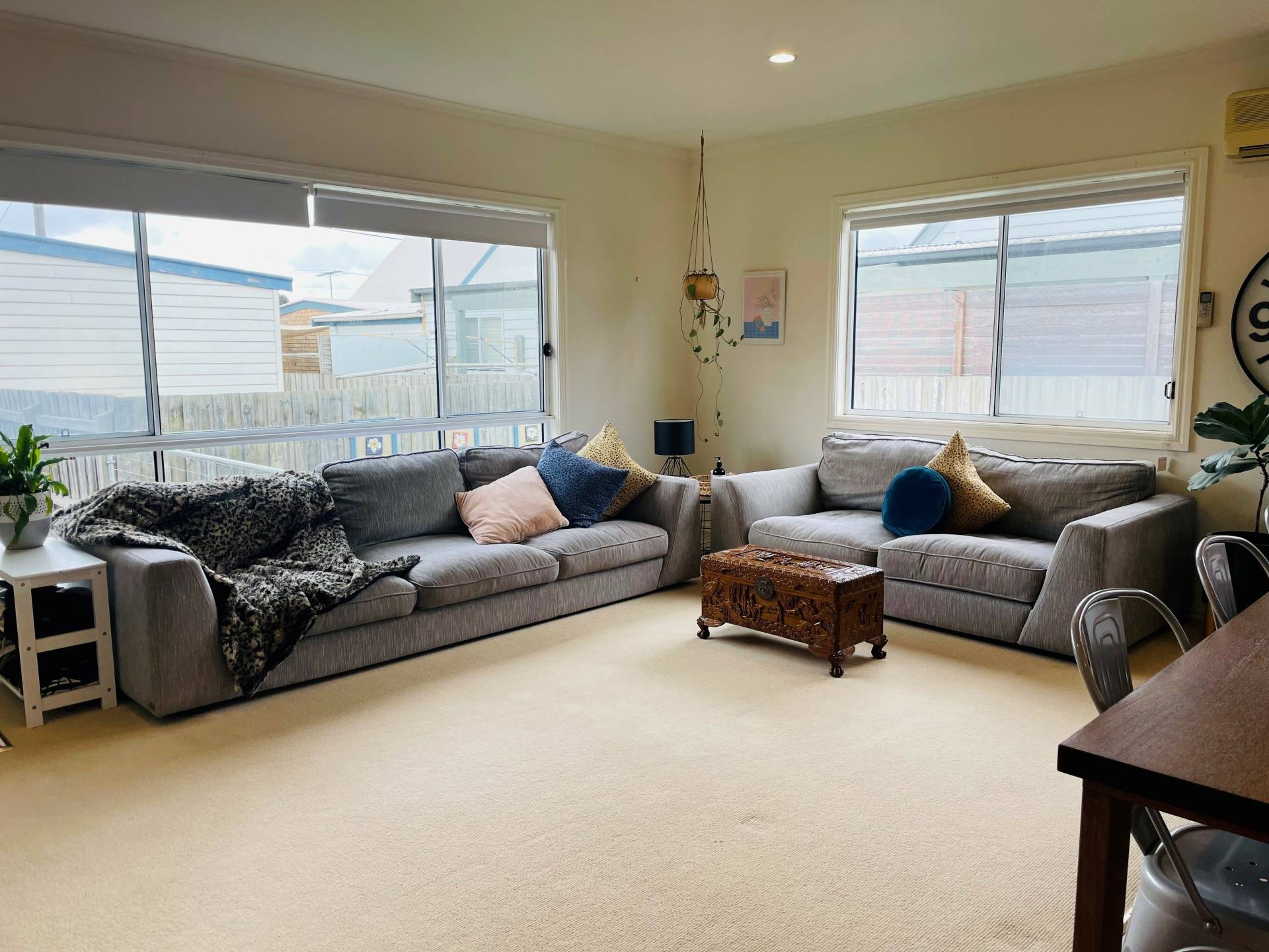 Snug and cosy is this home on separate title (370sqm site).  Leave the car at home and embrace a lifestyle of convenience and relaxation with this exceptional 2 bedroom plus study/3rd bedroom/2nd lounge townhouse.  Located in the heart of San Remo, this secure property offers the ideal ‘lock & leave’ opportunity for those seeking low maintenance coastal living.