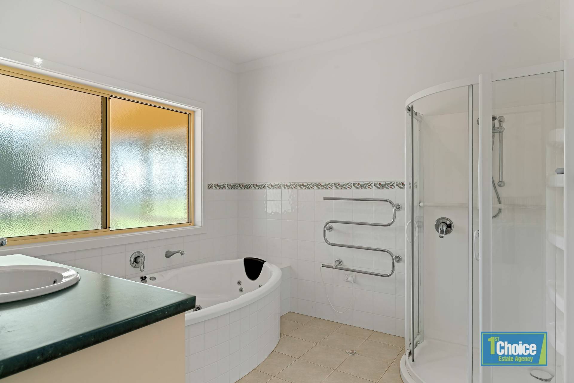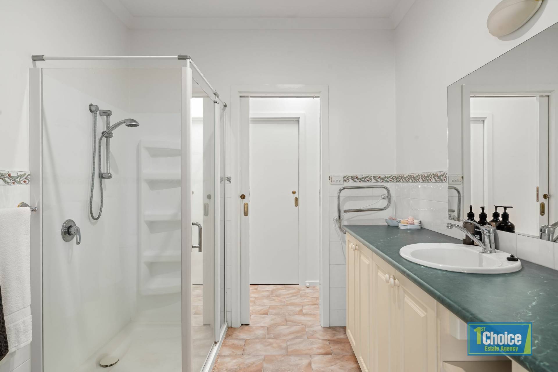 The eastern wing includes 2 further bedrooms, one with large ensuite with dual access to the hallway, separate laundry plus oversized hall storage with internal access to the double garage. The large utility / rumpus or possible 5th bedroom is conveniently accommodating with own separate entry via glass sliding doors from rear carport.