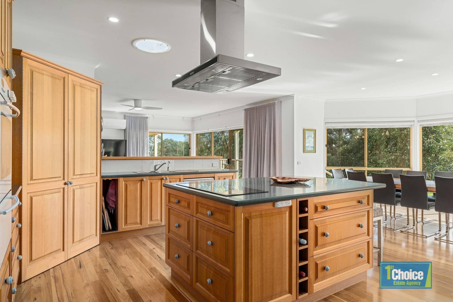 The central zone includes open and flowing living dining and recreational areas that surround the heart of this home, a crafted timber hostess kitchen which includes a walk-in pantry, stone topped service benches and island bar plus much more, adjacent is a formal lounge to relax and entertain whilst enjoying the rural surrounds through large north facing windows.