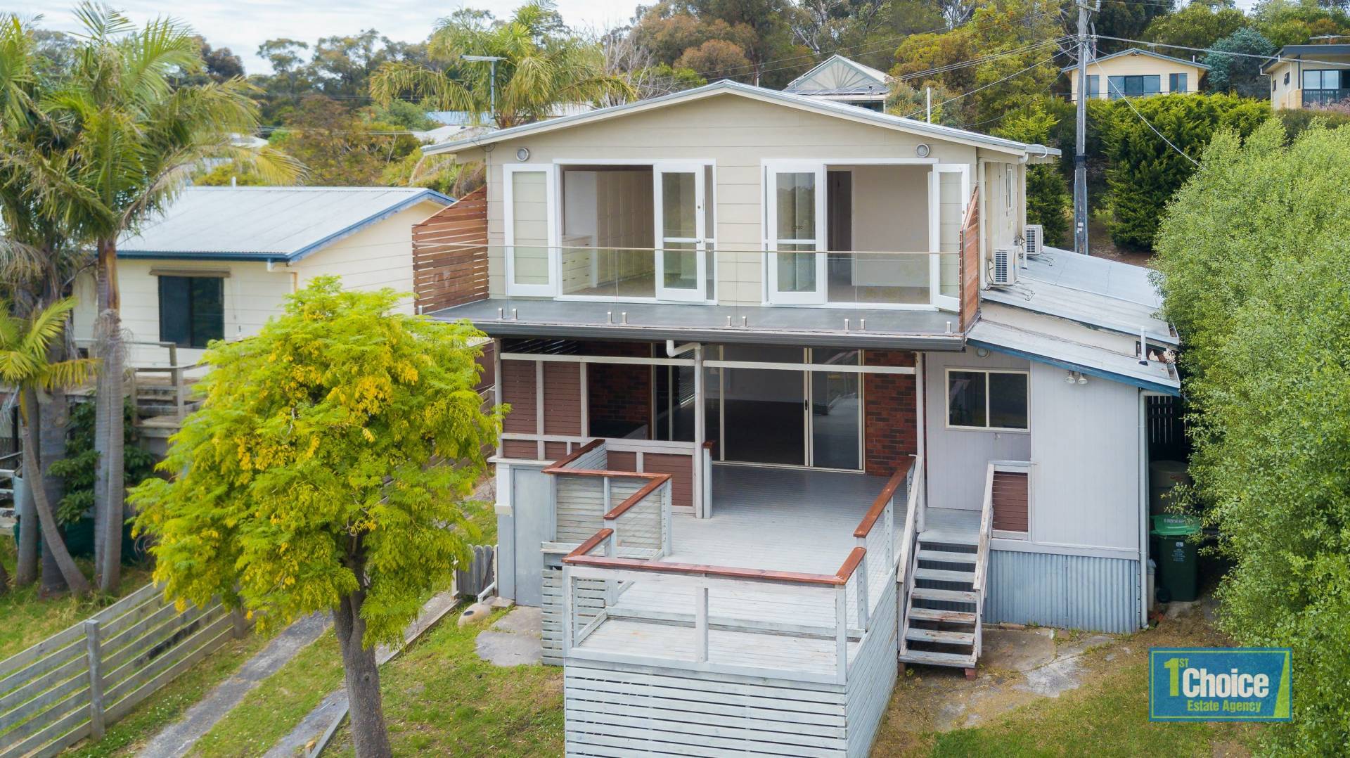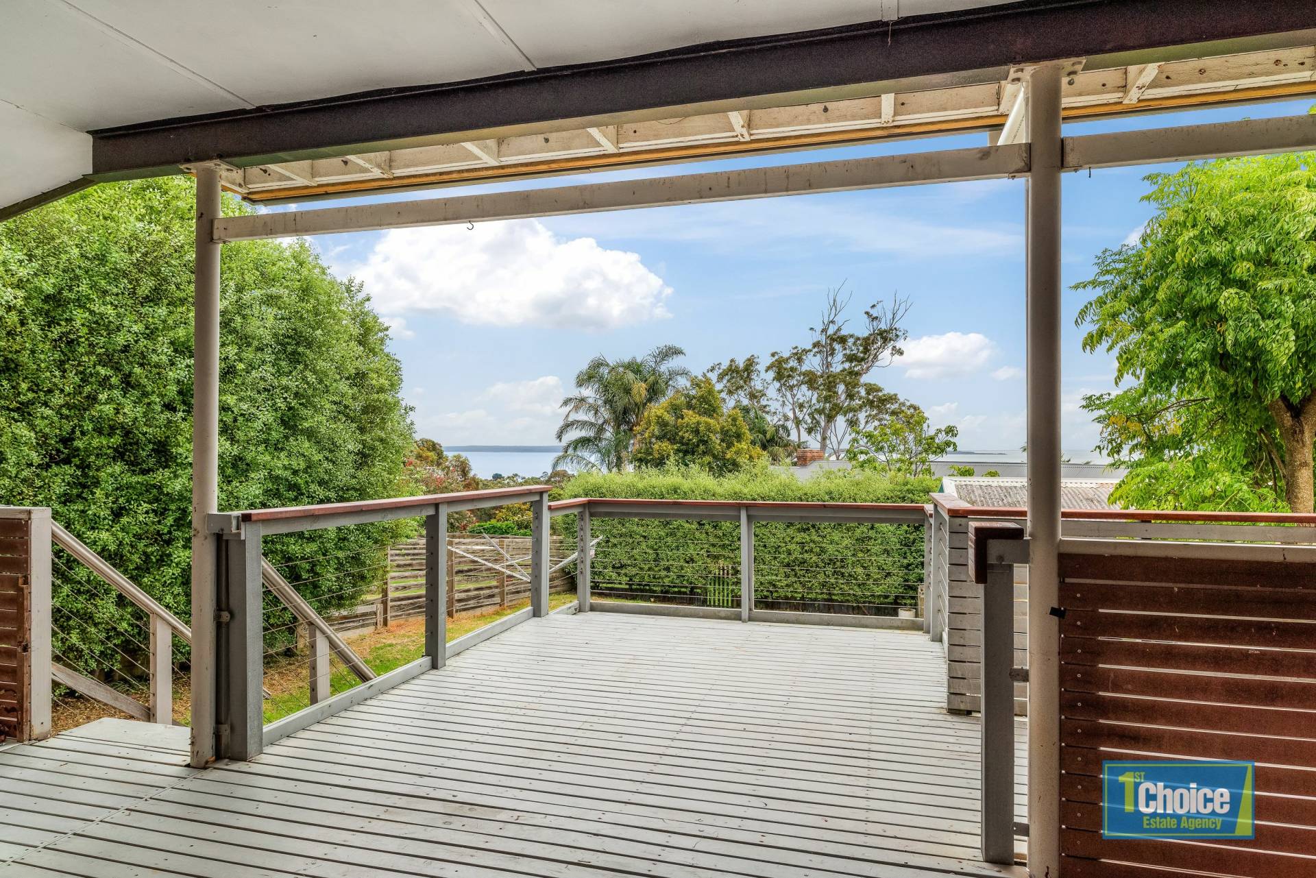 Nestled in an elevated and sought after location this 3 bedroom two storey home boasts 180 degree vistas of Westernport Bay.  Arriving at the property you are welcomed by a beautiful palm tree adding to the appeal of the home.   Entering through the front door you are greeted by a spacious living area flowing out to the large entertainment deck ideal for those family gatherings or just enjoying your morning coffees and sunrise over the bay.   The well appointed kitchen is equipped with electric cooking, plus 2 gas burners, rangehood, dishwasher, overhead cupboards, plenty of drawers, pantry and tiled splashback.