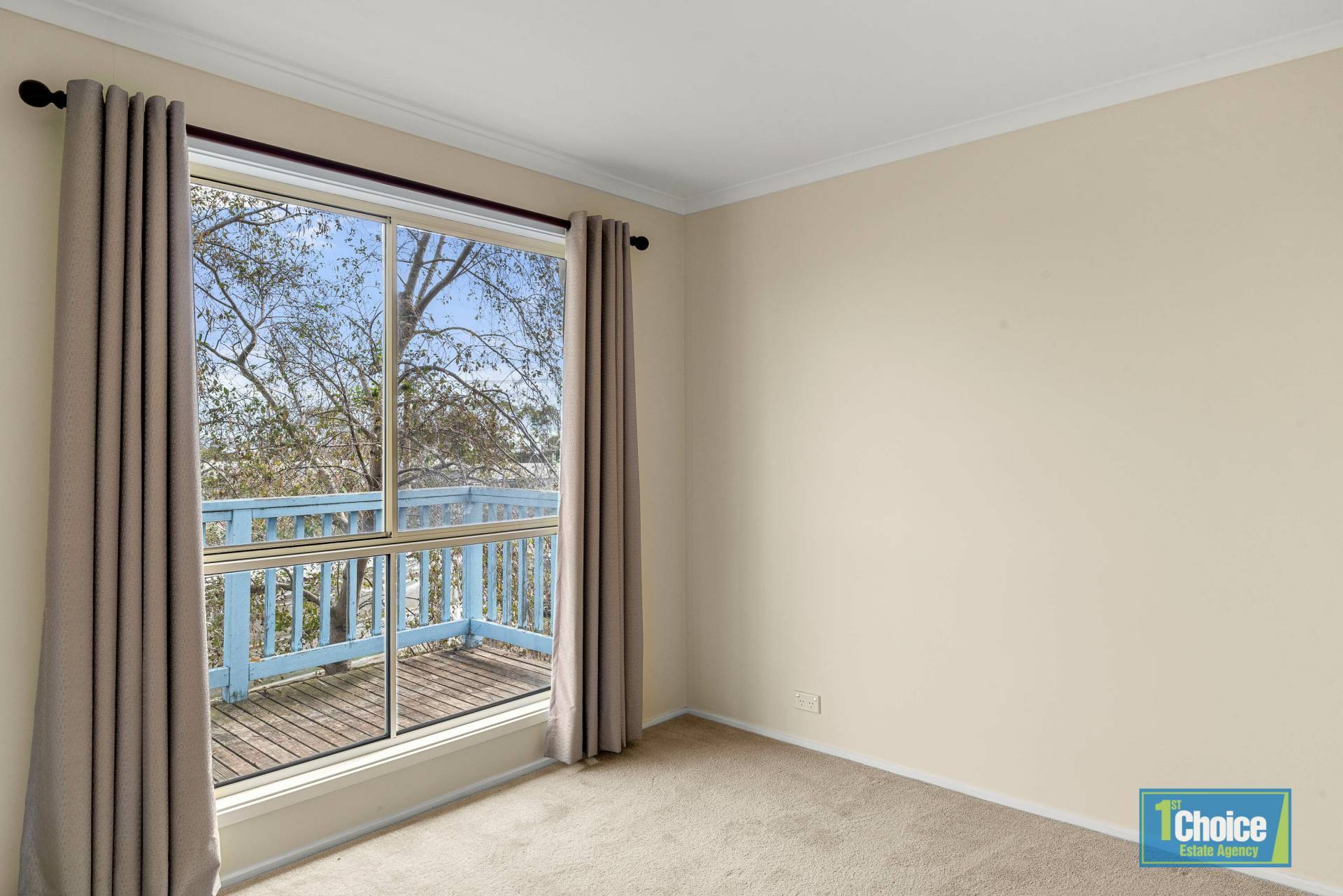 The upper level features a bright and airy open-plan design with polished timber floors, seamlessly combining the kitchen, dining, and living areas. This space is perfect for gatherings, with a sliding door leading to the balcony that offers breathtaking views of the bay. The modern kitchen is a chef’s delight, equipped with abundant drawers and overhead cupboards, a dishwasher, electric cooking, and an island bench that overlooks the living space. This creates an inviting atmosphere for family and friends to enjoy which has split-system air conditioning for year-round comfort.