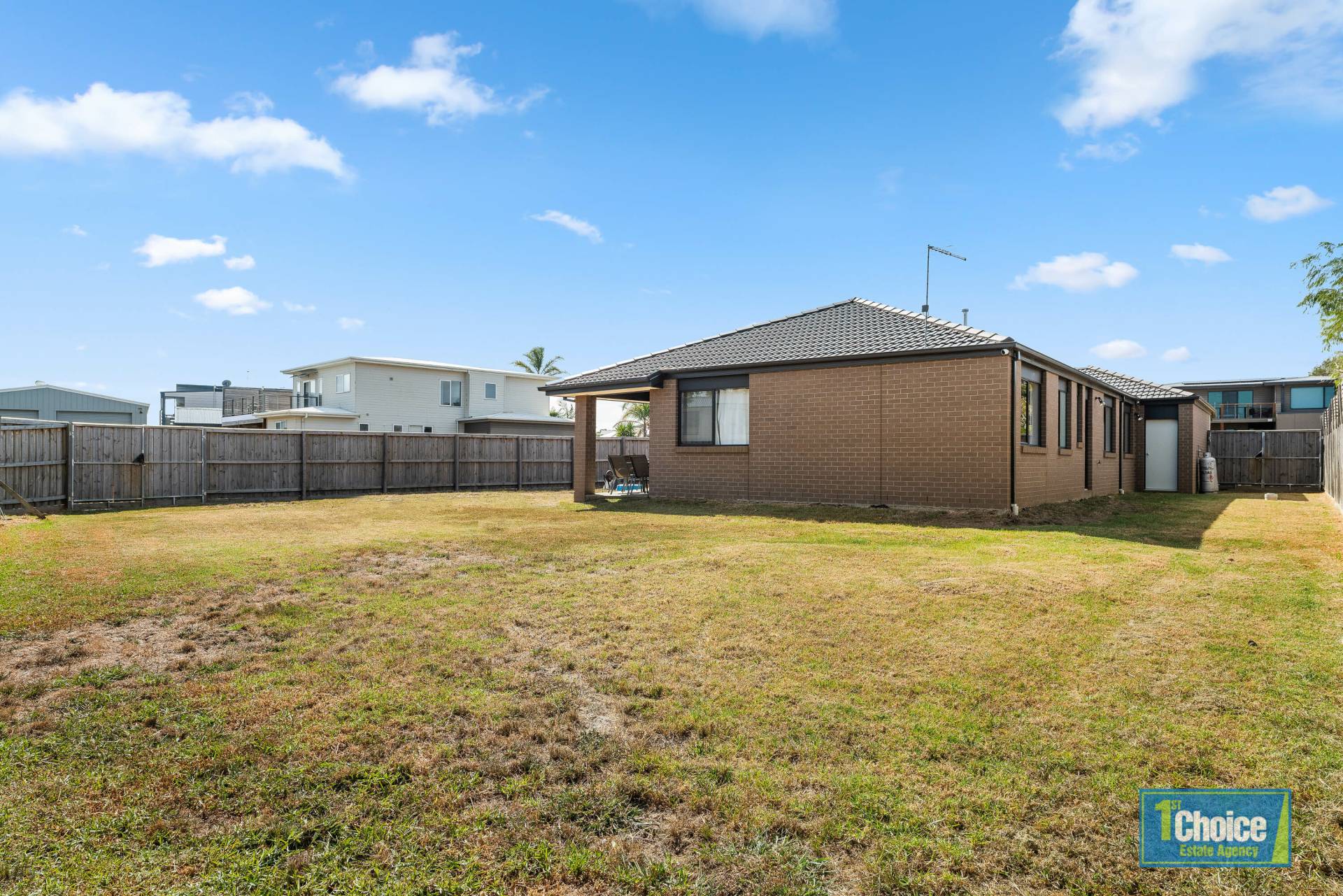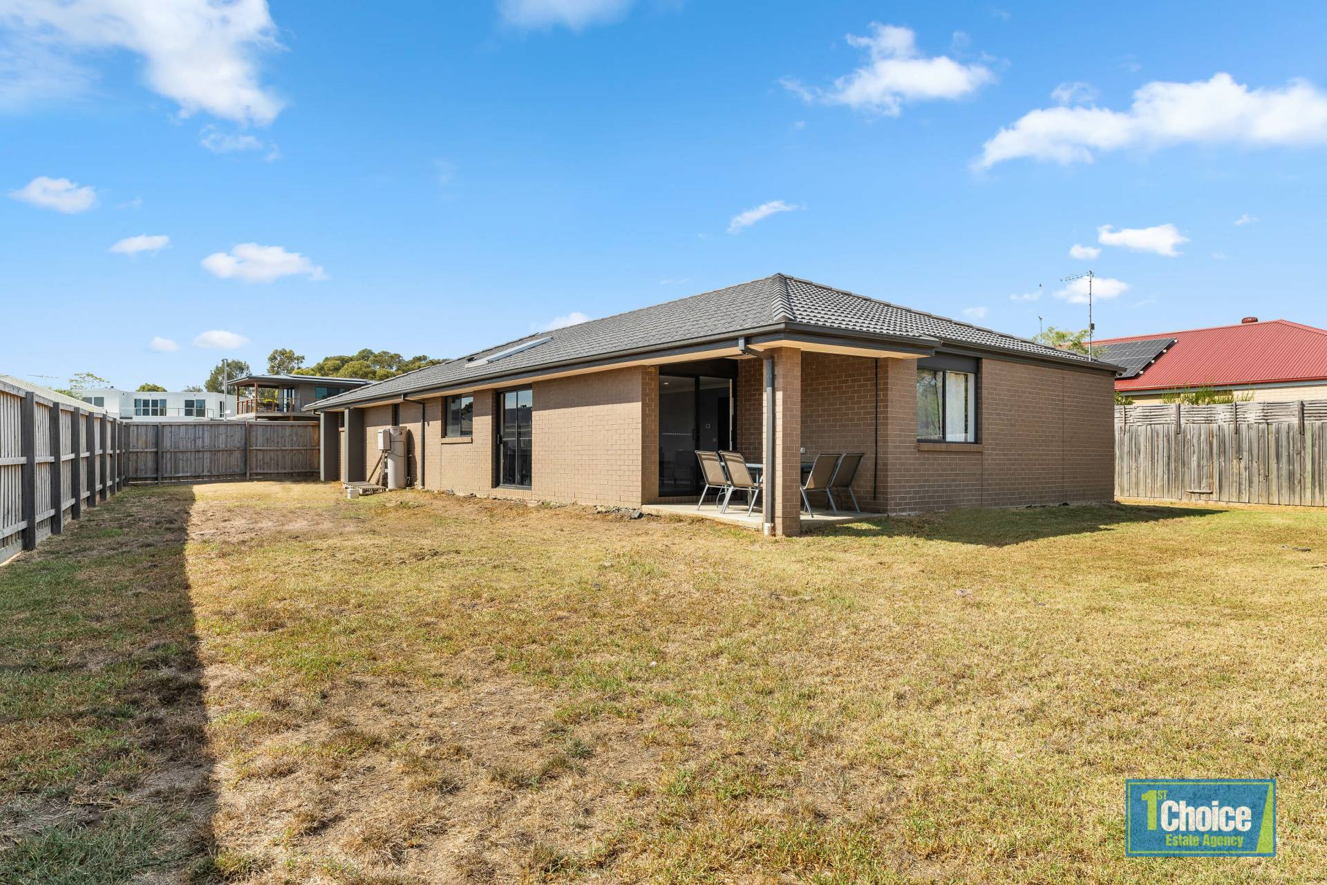 The property’s exterior is tidy and low maintenance.  The fully enclosed rear yard offers a safe haven for children and pets and has plenty of room for trampoline, swings or shed.