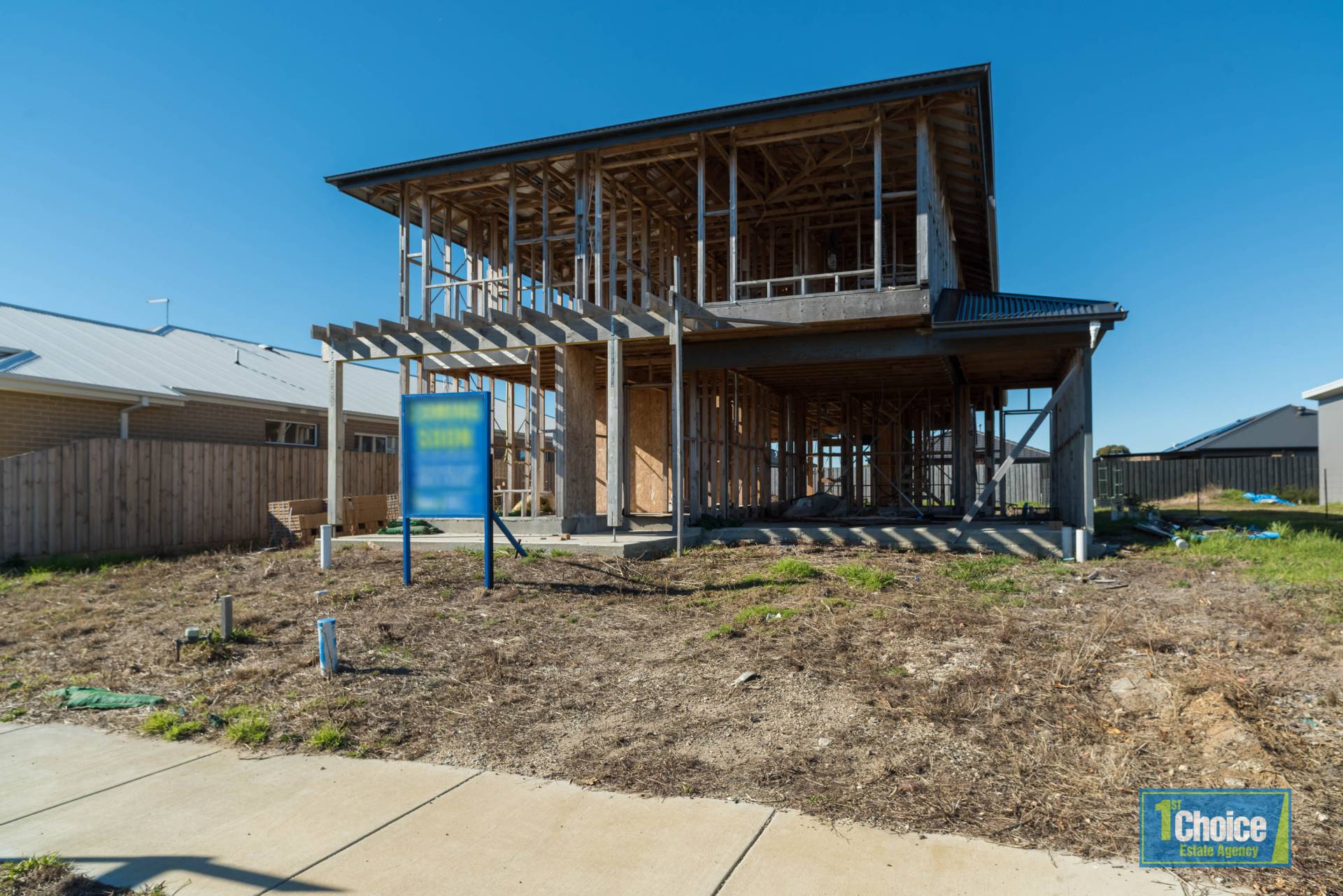 • Framework in place for a large 4-bedroom, 2-bathroom, 2-car home (exact internal configuration and inclusions not confirmed)