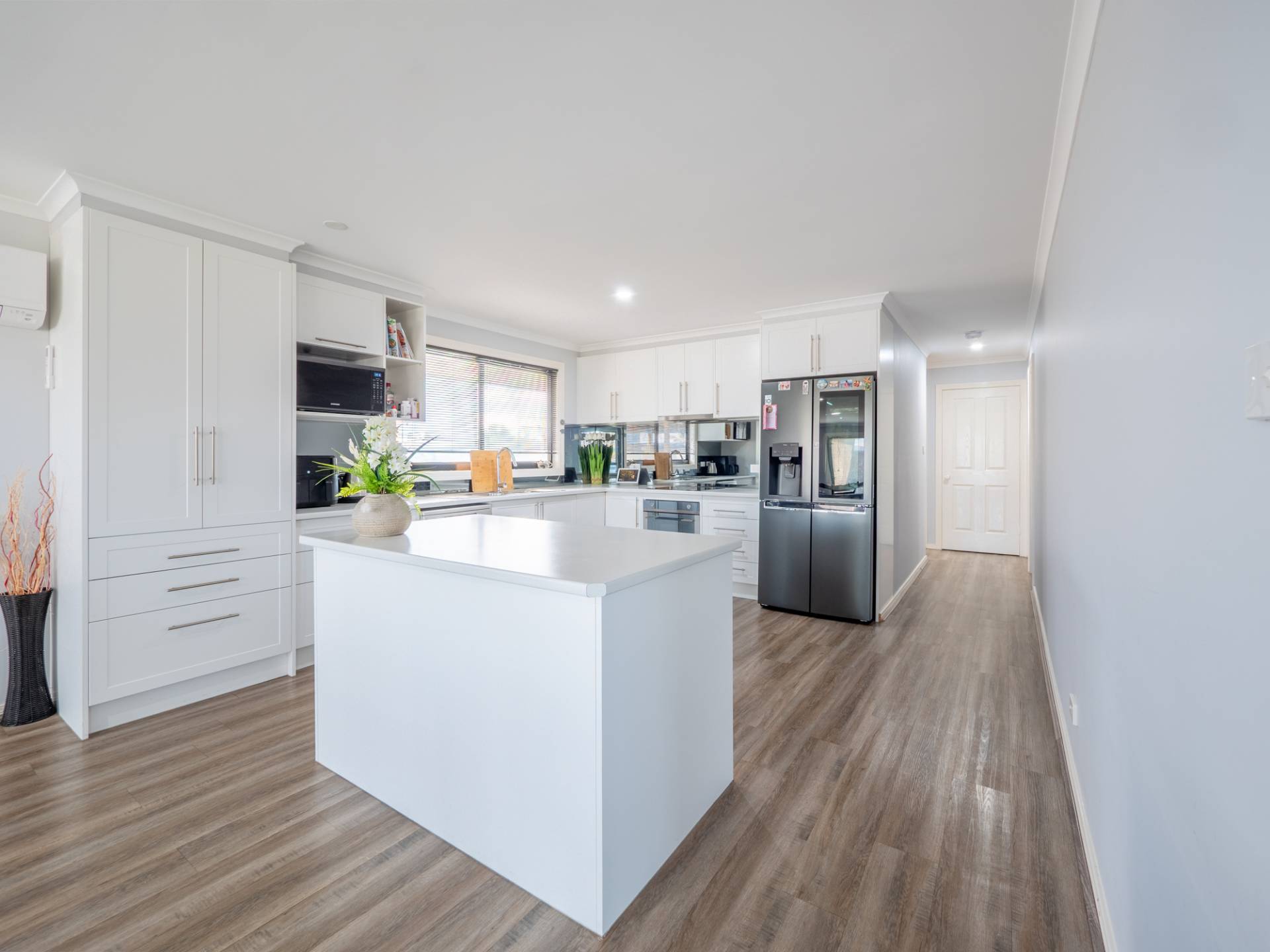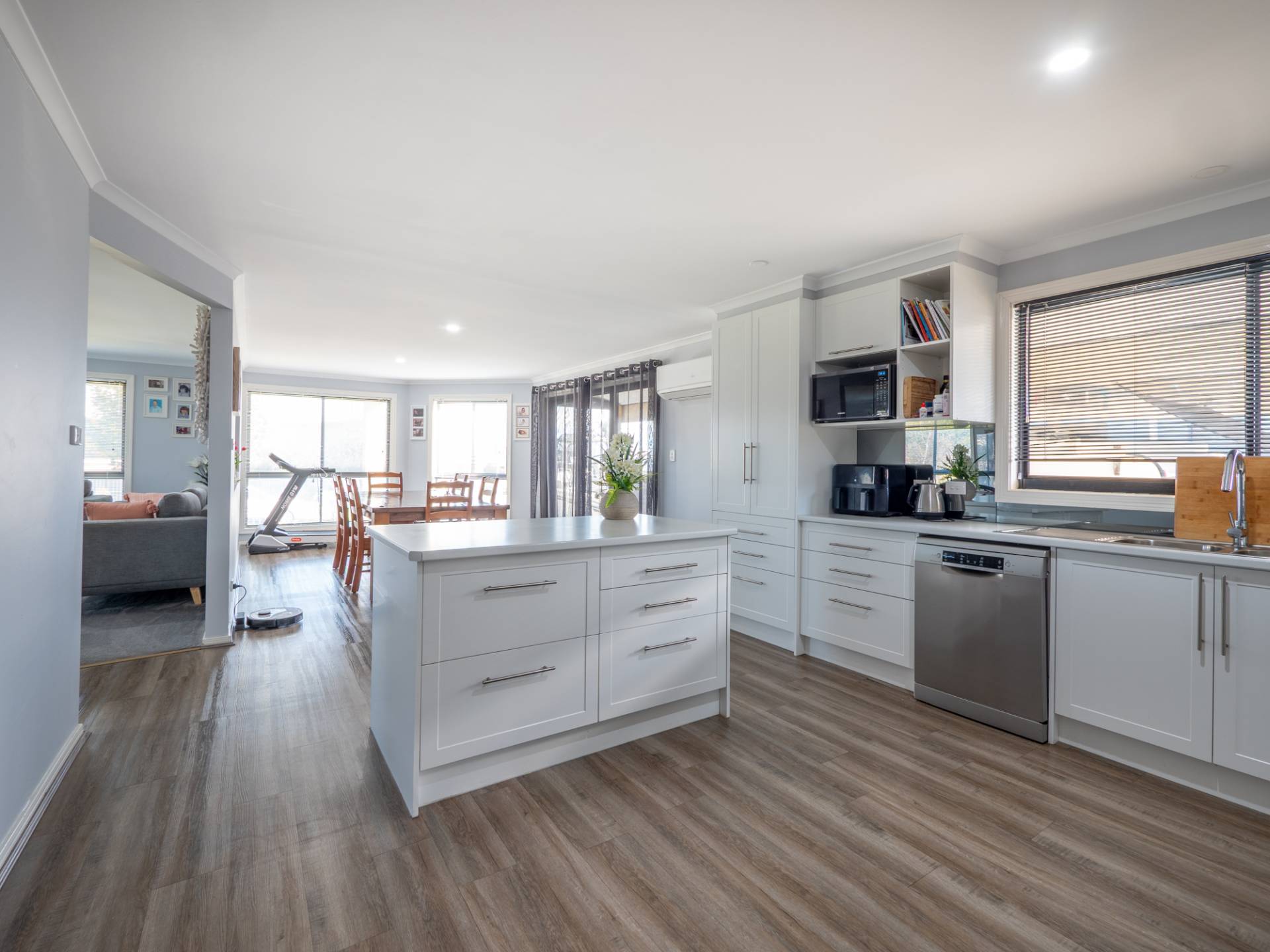 The heart of the home is a modern kitchen equipped with island bench with power points for phone charger and appliances, induction cooktop, rangehood, dishwasher, plenty of cupboards and soft closing drawers, pantry and sliding door to deck area.  The seamless flow between kitchen and living spaces makes sure that no one misses out whilst entertaining.