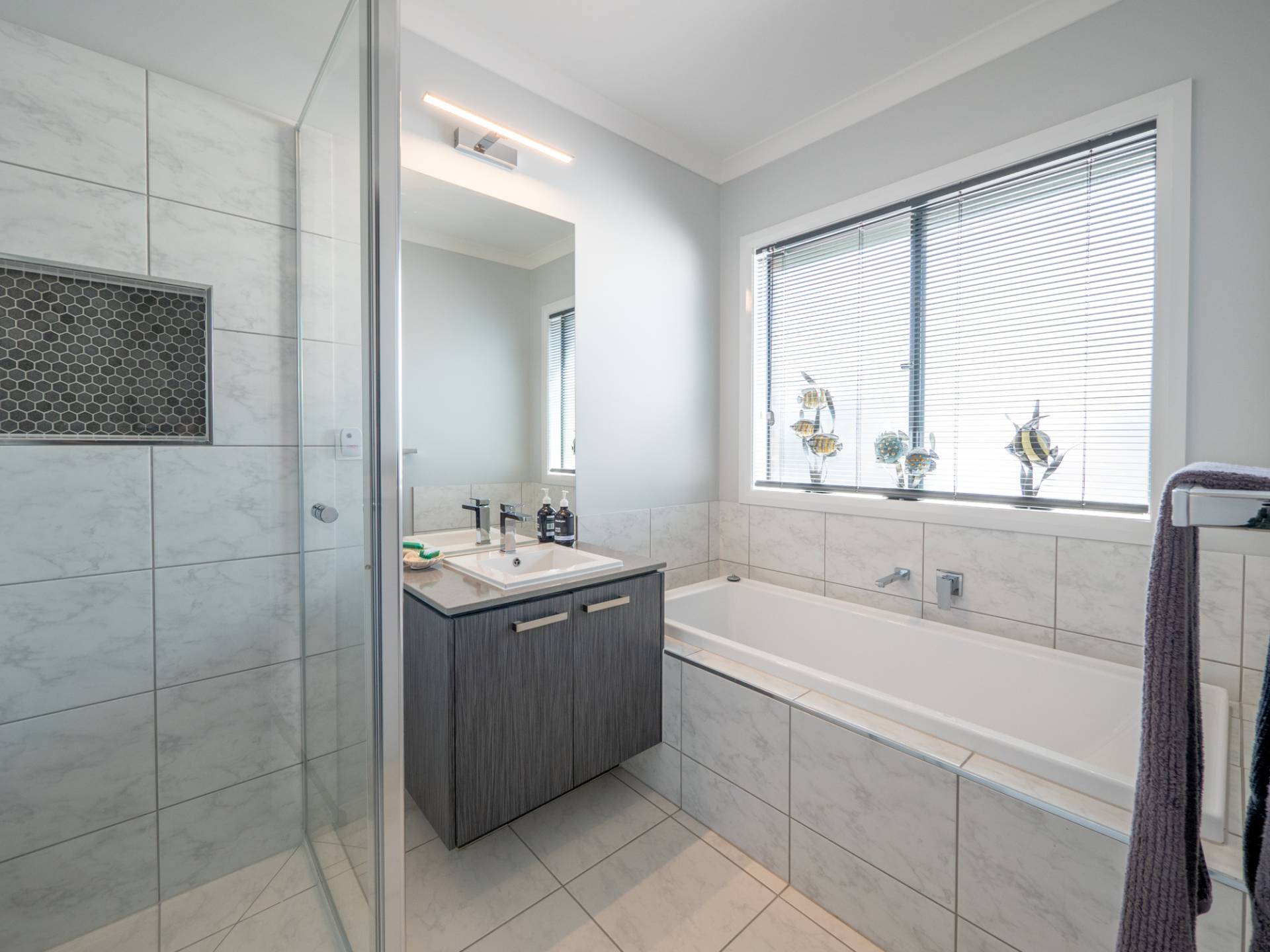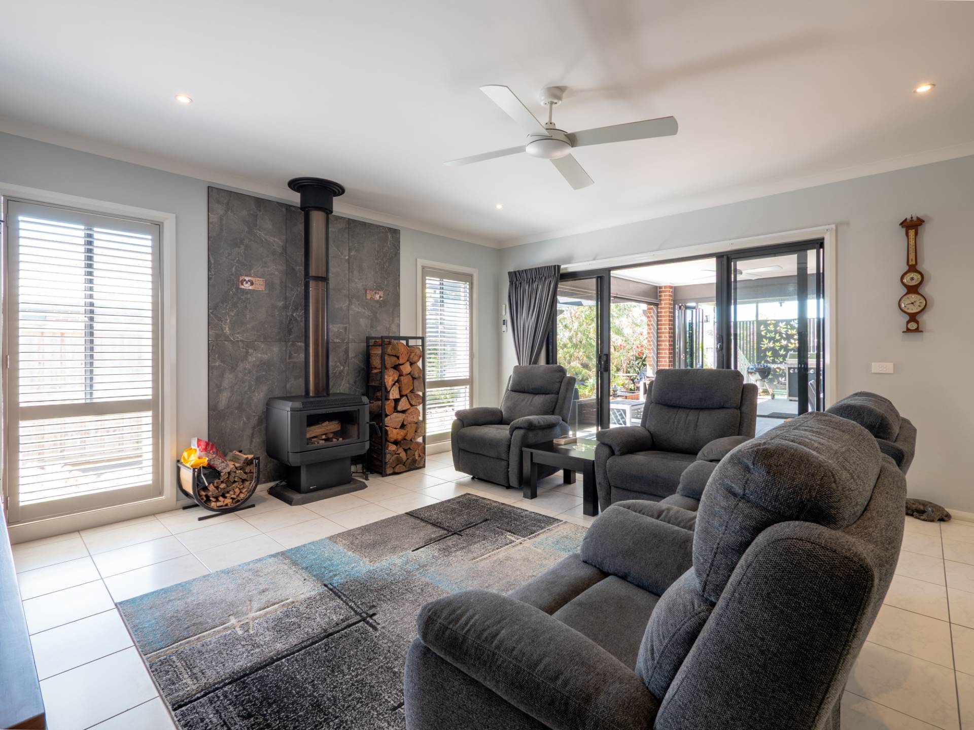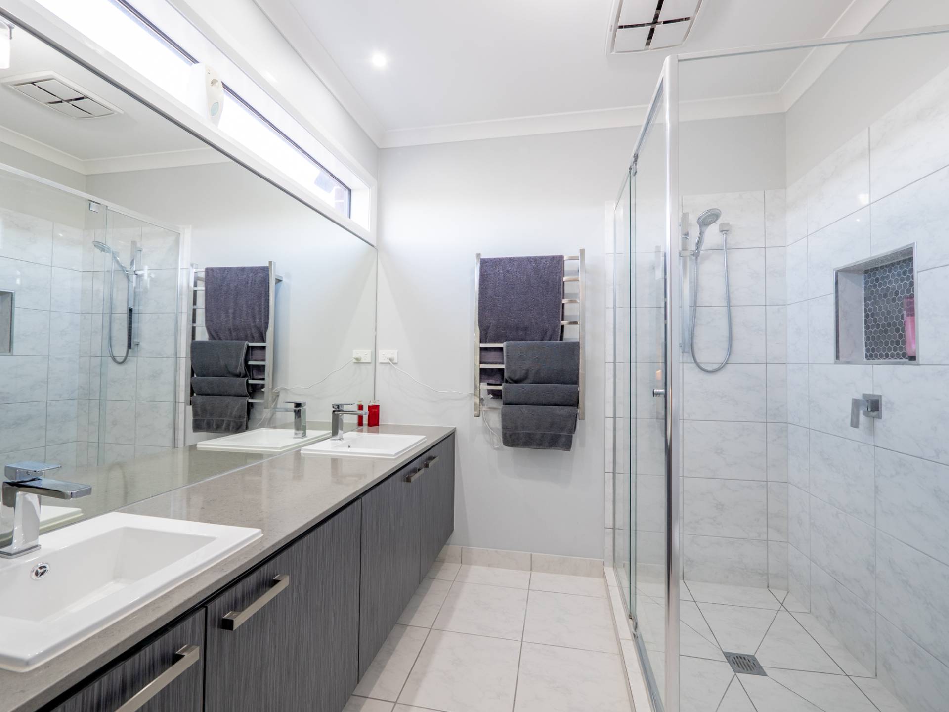 The master suite serves as a private haven with a stylish ensuite featuring double vanities, remote ceiling fan, walk-in-robe and sliding door access to undercover entertainment deck.