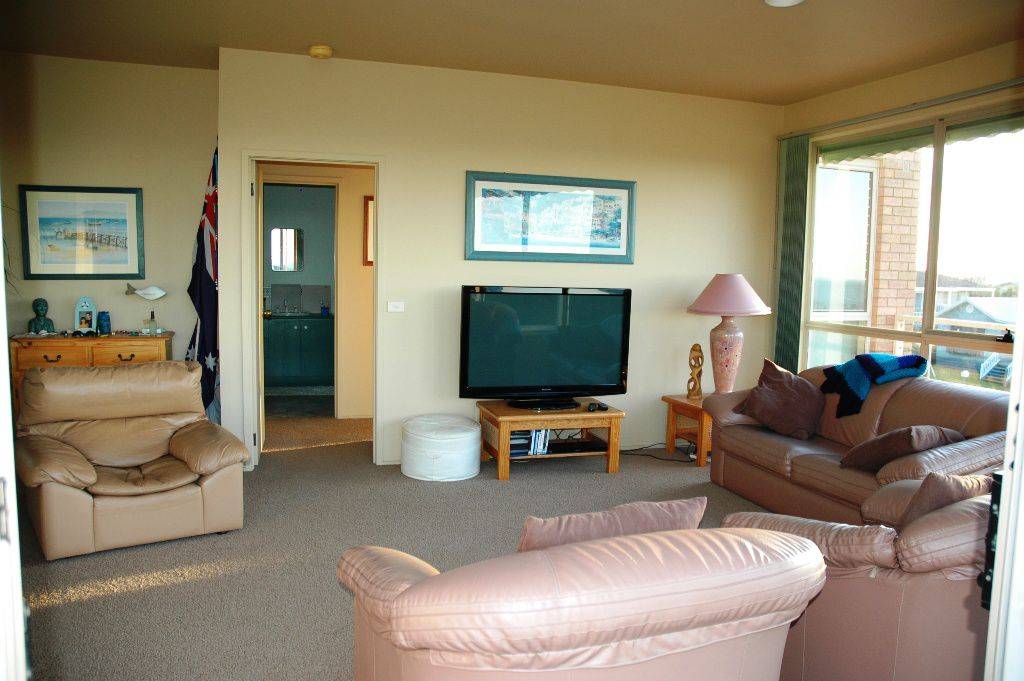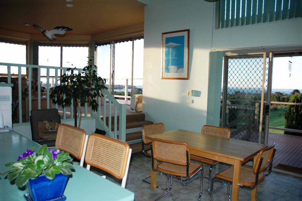 Elevated high above San Remo with 180 degree views over pasture and bays, this architect designed brick home has a totally relaxed atmosphere. Light and bright, there are water views from the living zones and all the bedrooms.