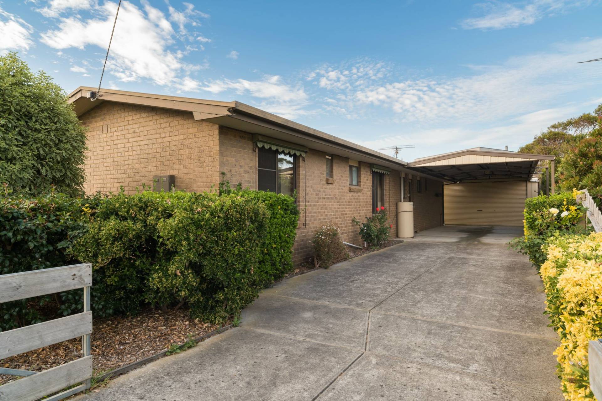 • Long concrete driveway with large carport