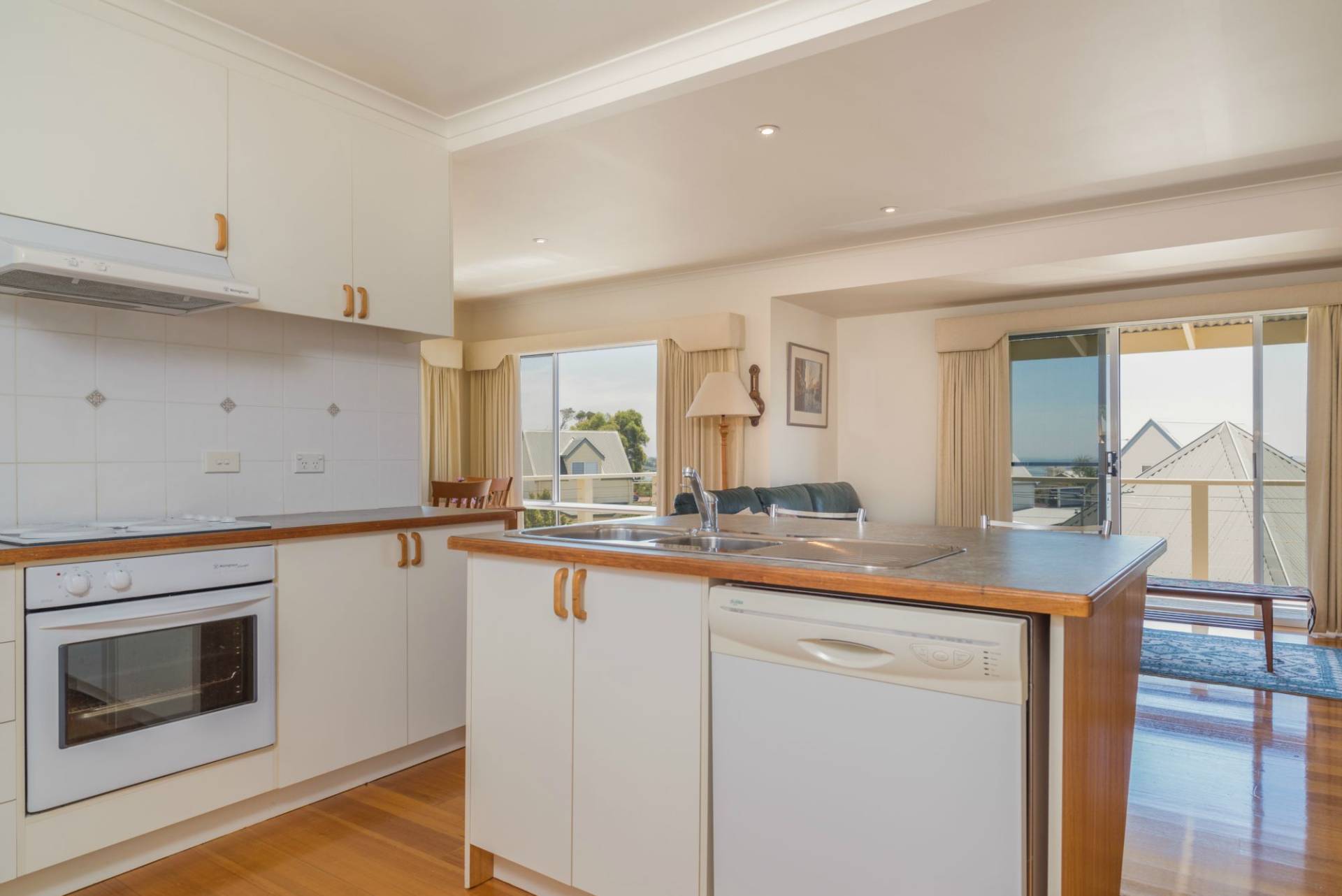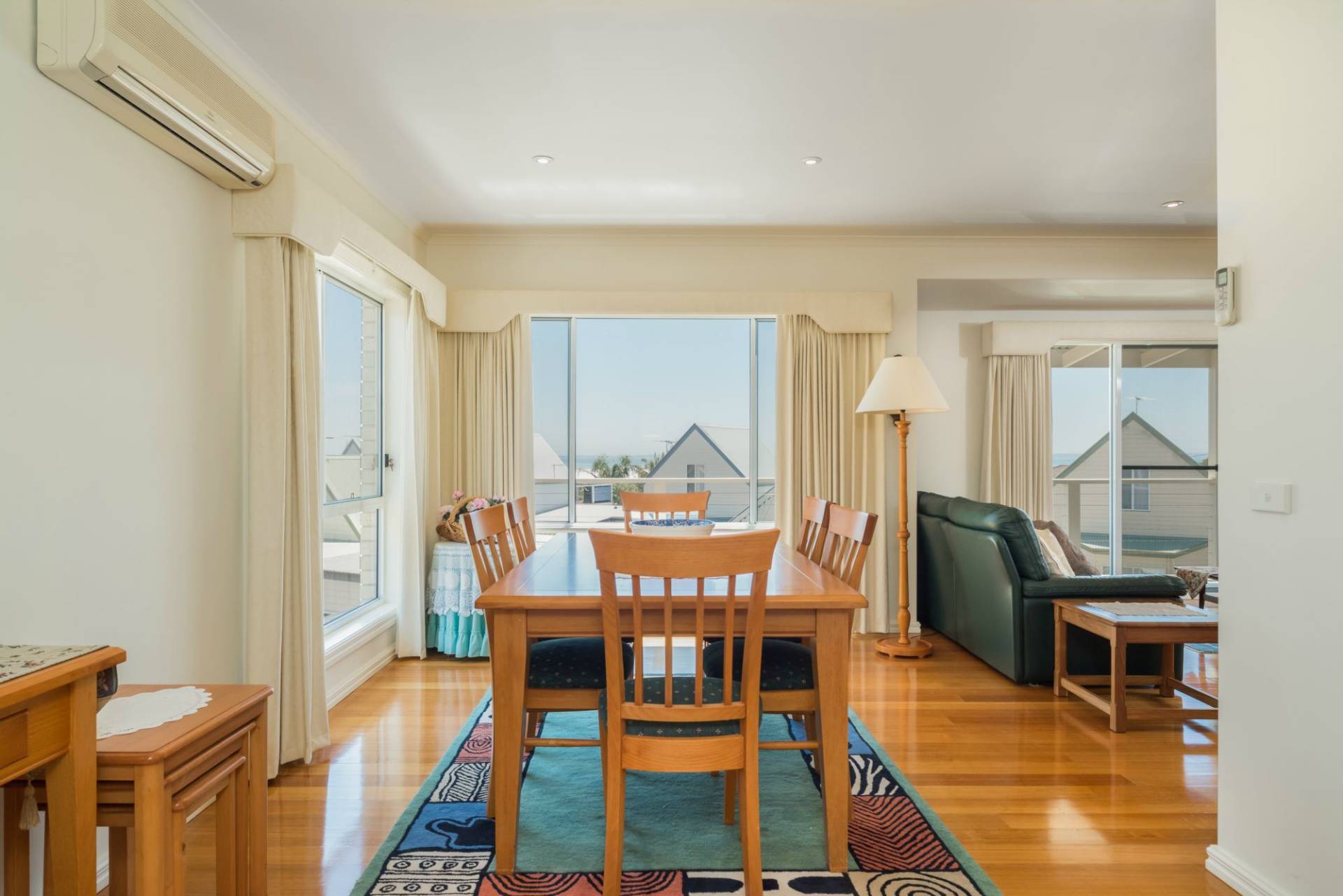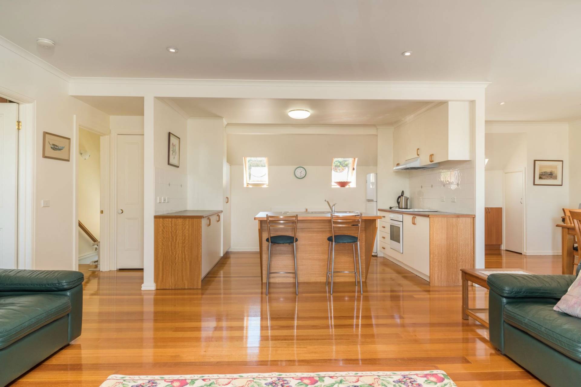 Starting on the upper level is the master bedroom with BIRs, ensuite with spa bath & WWC, a well-designed kitchen with freestanding island bench, lounge area, adjoining dining room, a study nook and hardwood polished floors. Step out onto the semi covered deck which captures north-facing bay views of Westernport Bay.
