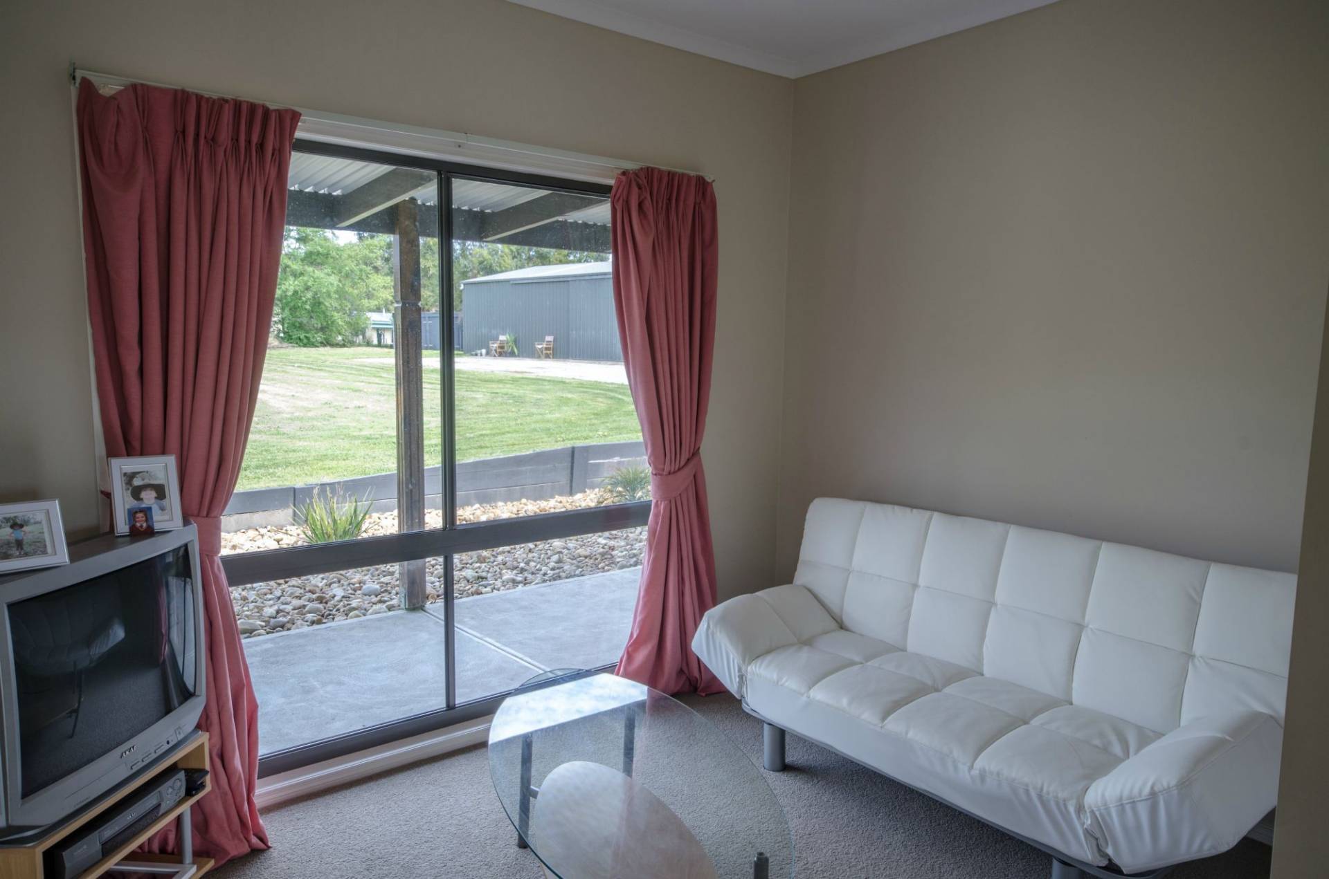 Decked gazebo with built in cupboards, fridge, wood heater, bbq, cafe blinds at each end of deck, 60 x 25 shed doors to the front and side, concrete floor, power, built in office, kitchen, shower, toilet, big enough to work from home or entertain.