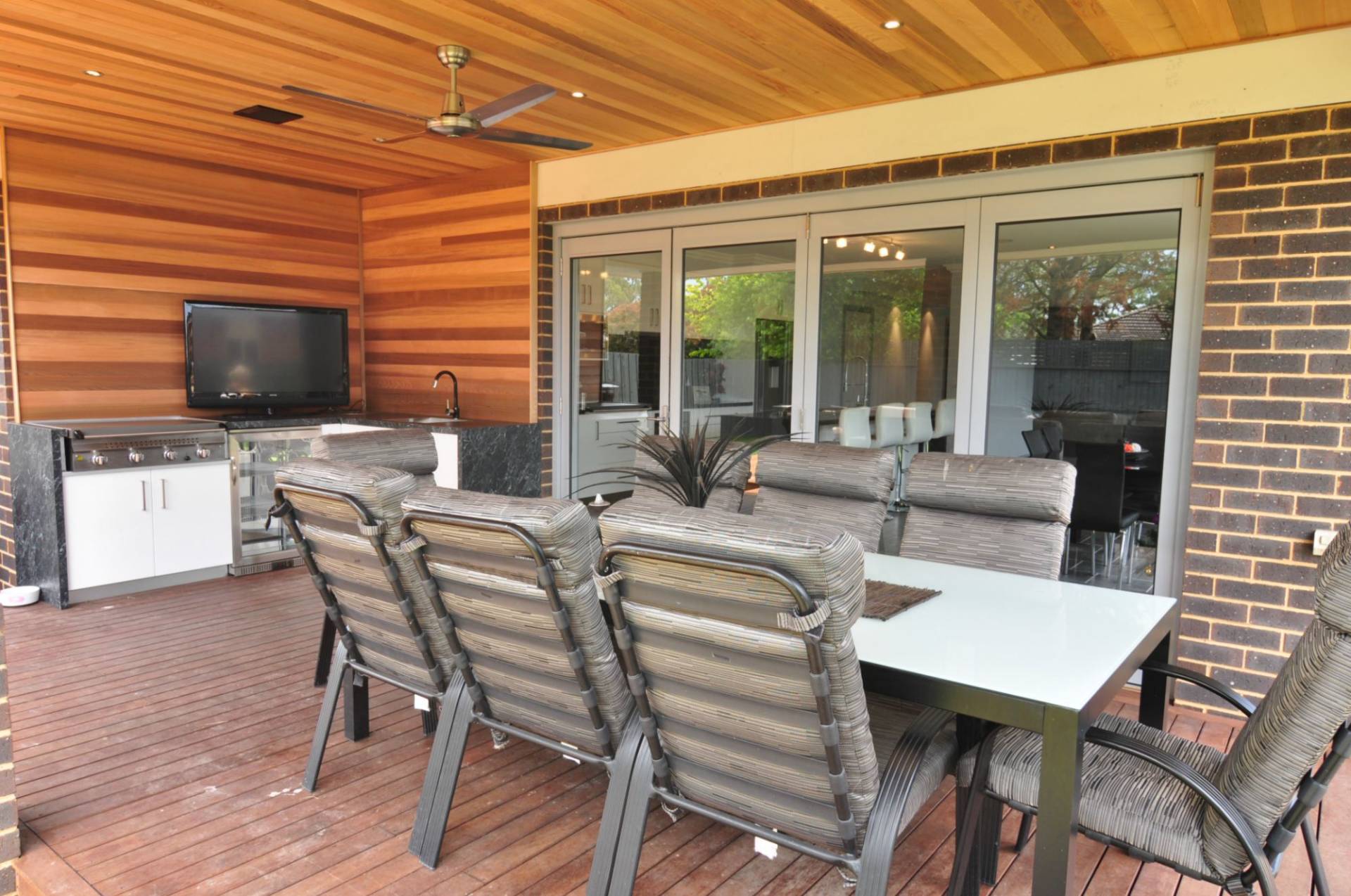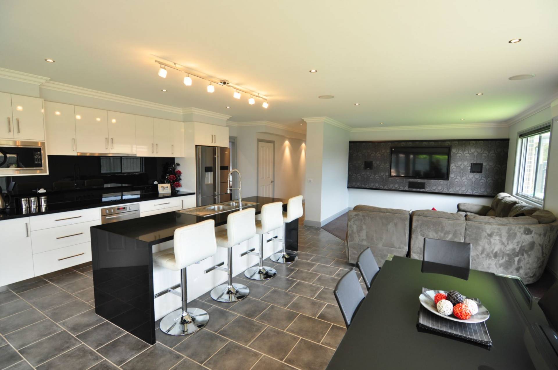 Separate theatre room with new modern feature wall with built in plasma TV and inserts with down lights, bio ethanol flamed heater, hallway with down lights on both sides of bulkheads, modern floor tiles throughout. Large family room also with feature wall with built in plasma TV and surround sound speakers, split system for heating and cooling, beautiful kitchen with island bench, Caesar stone bench tops, electric oven and hot plates, corner pantry, dishwasher, overhead cupboards, pot draws and double sink. Alfresco area with ceiling fan, quality BBQ, fridge and sink, new timber decking, cedar lined with built in surround sound speakers, also extra timber deck, side access to back yard, double garage URL with remote entry, paved stone driveway on approx 780sm block.
