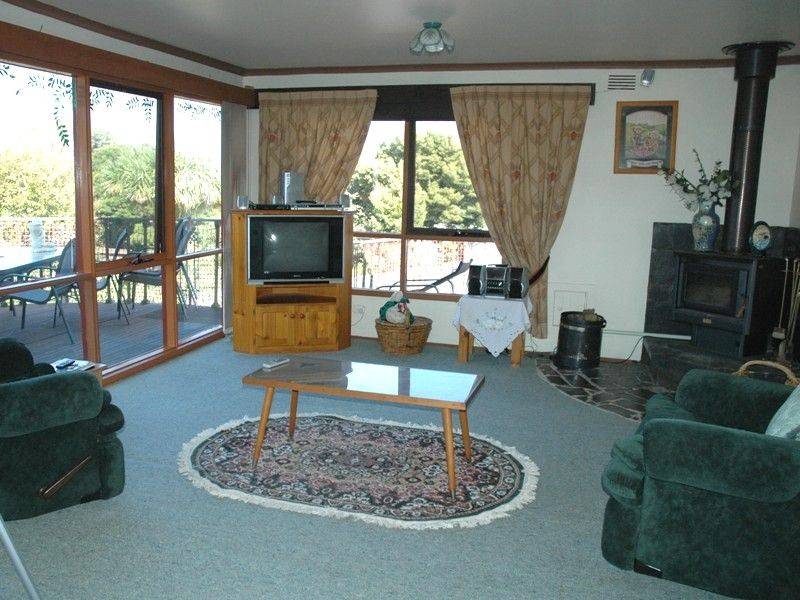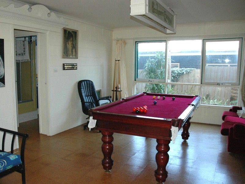 This large family hideaway is well located within walking distance of the bay and surf beaches and surrounded by mature trees and tranquil gardens. It can accommodate many, with 4 bedrooms, 3 living areas and a LU garage. On the upper level is an open plan kitchen dining area with an attractive feature wall, a separate lounge that has access to 2 balconies, one facing south east, the other west. Coonara wood fire plus heater. 2 bedrooms, bathroom, plenty of storage cupboards, carpet and polished floorboards throughout. On the lower level, 2 large living areas, one of which is used as a billiards room and the other as a teenager’s relaxation area, 2 bedrooms, one of ordinary size and one double size, bathroom and storage nook or study alcove.