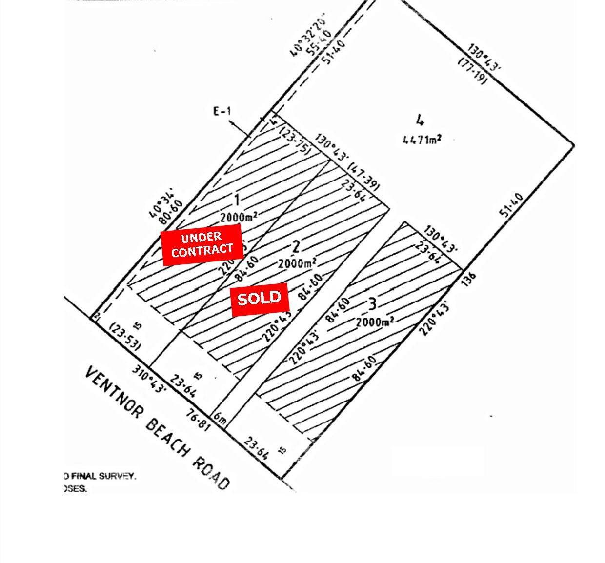 This is a new 4 lot subdivision carefully thought out with a quality large residence at the rear on 1.1 acres and three 1/2 acre building blocks fronting Ventnor Beach Road, with generous building envelopes.