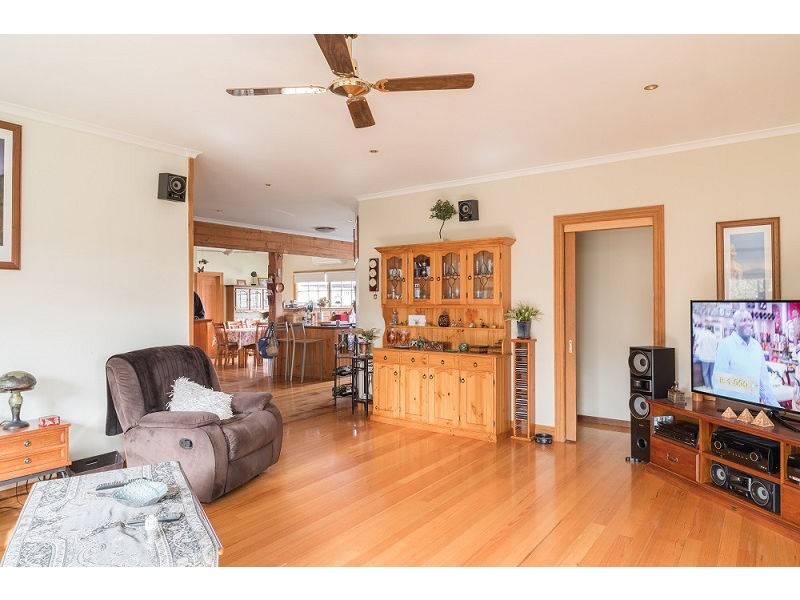 The corner front entry reveals a most attractive older style weatherboard home with colonial windows and an attractive garden. The body of the home runs along the northern boundary taking in large amounts of winter sun. At the rear is a generous garage – ideal for a ‘tradie’ or many hobbies.